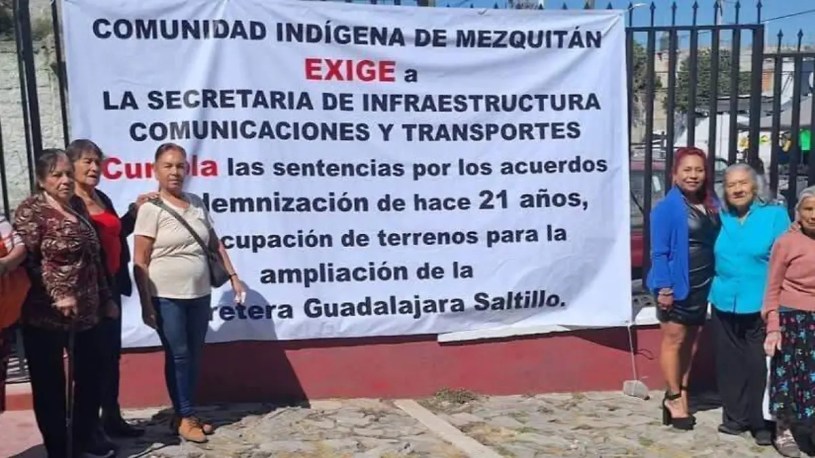 Ya se ha mencionado que la Secretaría de Infraestructura, Comunicaciones Y Transportes (Sict), debe pagar a las mujeres, los hombres y los adultos mayores, integrantes de la Comunidad Indígena de Mezquitán, en Zapopan, la indemnización por la ocupación de terrenos de su comunidad, para la ampliación de la carretera Guadalajara-Saltillo, pues los Tribunales asi lo resolvieron a su favor, después de un litigio de más de 7 años, por el incumplimiento de los acuerdos de indemnización firmados hace más de 21 años.