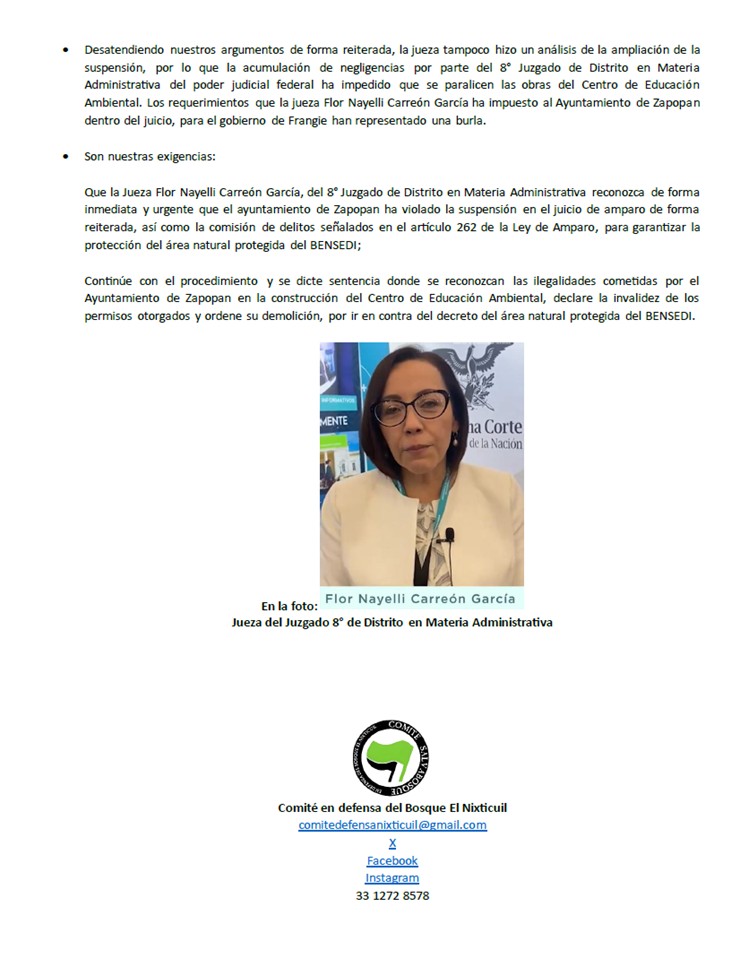 Comunicado Comité en defensa del Bosque del Nixticuil