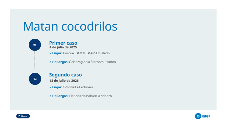 “La Secretaría de Medio Ambiente y Desarrollo Territorial del Gobierno de Jalisco (Semadet), presentó una denuncia penal ante la Fiscalía General de la República (FGR), luego de que ayer, viernes 4 de julio, se encontró el cadáver de un cocodrilo dentro del Estero El Salado, en Puerto Vallarta”.