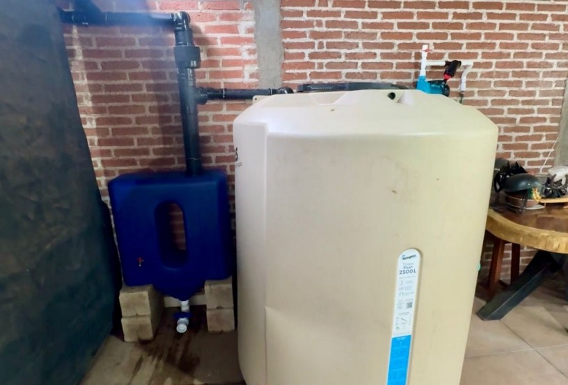 En el caso de esta vivienda donde colocaron este primer “Nido de lluvia” en Autlán, contaba con un tejaban grande de lámina galvanizada, lo que favoreció poder tener un conducto para que el agua de lluvia pudiera llegar al depósito instalado de 2 mil 500 litros de capacidad, con su respectivo filtro.