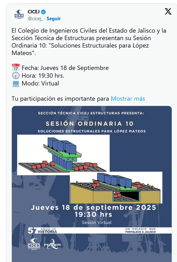 La presidenta del Colegio de Ingenieros Civiles de Jalisco, Mirna Avilés, advirtió que el área metropolitana enfrenta una infraestructura rebasada ante las lluvias y problemas de movilidad que ya no admiten postergación. Planteó que el drenaje profundo de Guadalajara debe impulsarse como obra estratégica para enfrentar el cambio climático y que la avenida López Mateos requiere una decisión integral que sume transporte público masivo, accesibilidad peatonal y conexión de infraestructura existente. Te recomendamos Abren diálogo para proponer soluciones en López Mateos