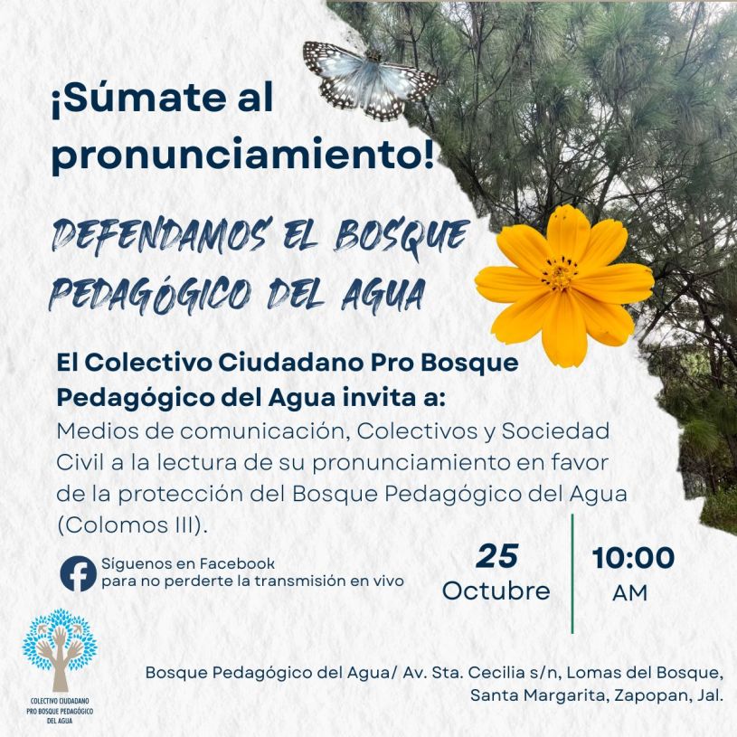 El Colectivo Ciudadano Pro Bosque Pedagógico del Agua tiene el honor de invitar a medios de comunicación, colectivos, vecinos y vecinas, redes solidarias y ciudadanía en general a participar en la Rueda de Prensa por la defensa del Bosque Pedagógico del Agua (Colomos III)