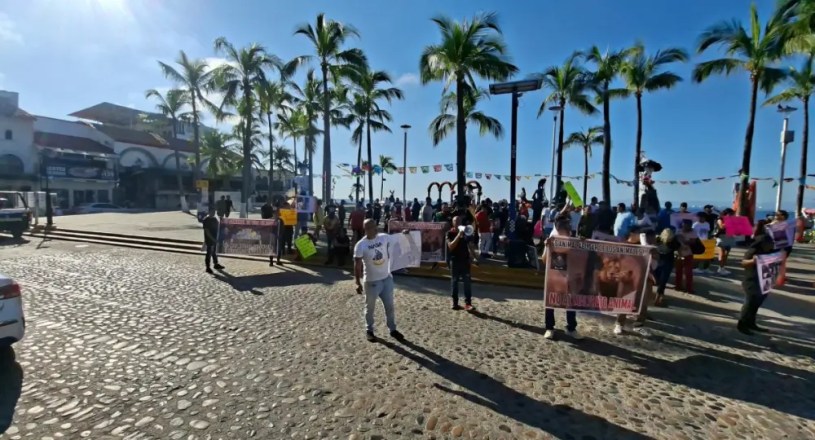 Integrantes de la Resistencia Civil Pacífica, acompañados por activistas animalistas, realizaron una manifestación la tarde de este jueves en los Arcos del Malecón, frente a la Presidencia Municipal, para exigir la intervención de las autoridades ante el presunto maltrato animal en el Zoológico de Puerto Vallarta.
