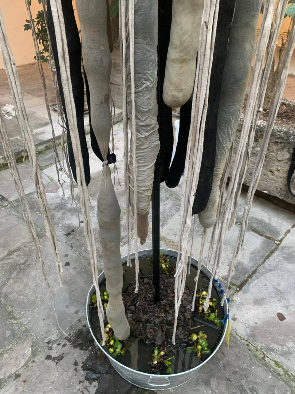 Se trata de una escultura de gran formato que simula la figura de una medusa marina y que está construida con materiales reciclados: llantas, pantimedias y cabello humano, la cual al ser lanzada al río, tiene el objetivo de absorber residuos tanto jabonosos como contaminantes del río Santiago, funcionando como un filtro.