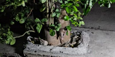 Rescatan a tlacuache atrapado en un árbol de la Col. La Aurora